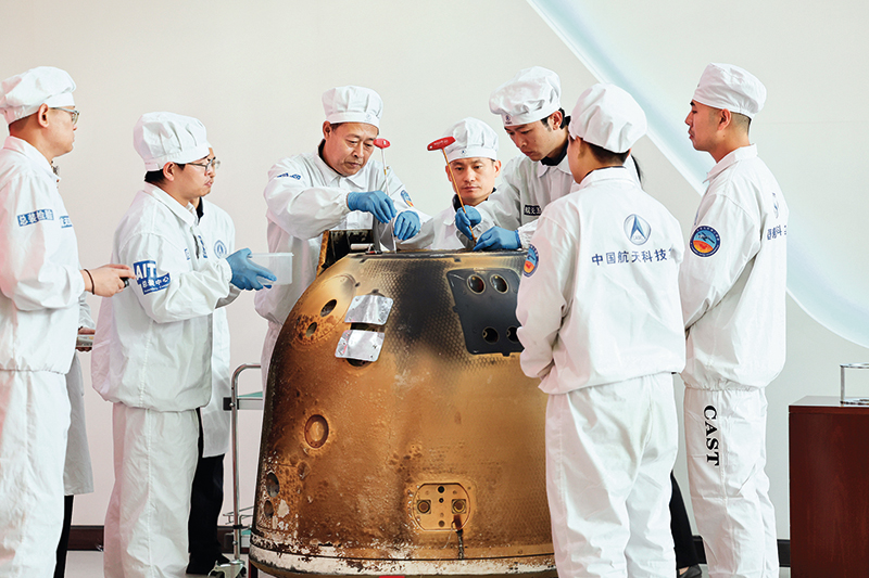 科研人员在中国航天科技集团五院对嫦娥六号返回器进行开舱,检验关键技术指标完成情况(2024年6月26日摄)
