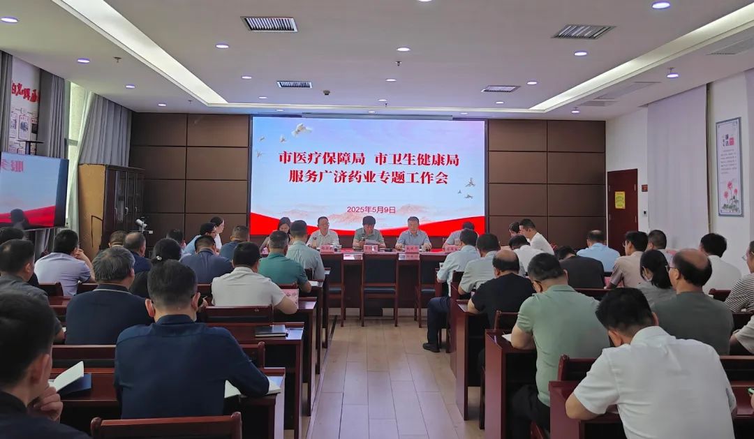 5月9日,武穴市医疗保障局与市卫生健康局携手举办“服务广济药业”专项工作会议。武穴市医疗保障局党组书记、局长廖律根,党组成员、副局长张菁,武穴市卫生健康局公共卫生总师胡征民,市医共体总医院(市第一人民医院)党委副书记蔡林生,广济药业党委委员、副总经理、济康公司董事长赵延华参加会议。