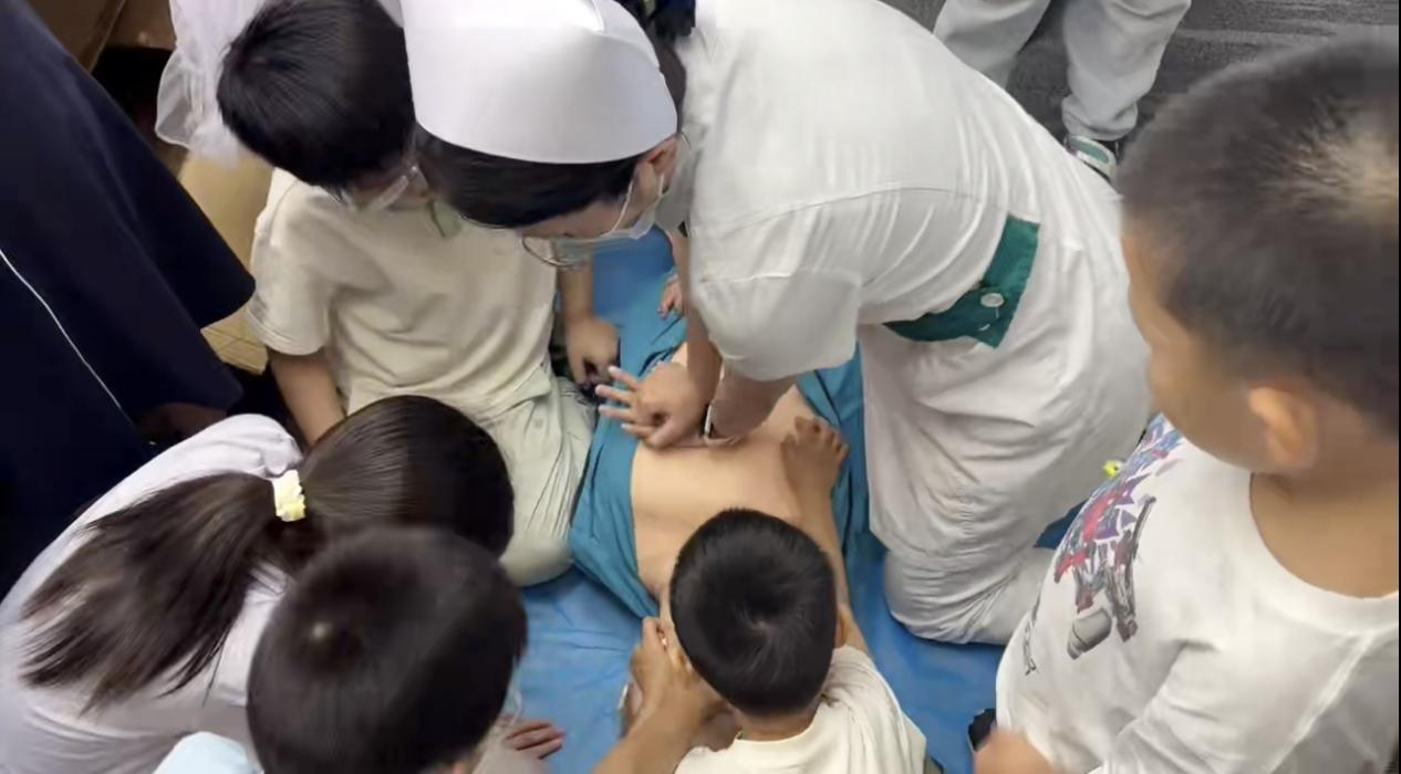 在急救课程上,孩子们学习了心肺复苏急救知识,掌握了如何正确运用海姆立克急救法,了解了许多关于急救的其它知识。在互动环节中,孩子们踊跃参与,积极举手回答问题。老师耐心讲解示范,指导他们亲身体验,教导孩子们尊重生命,更好保护自己和他人。