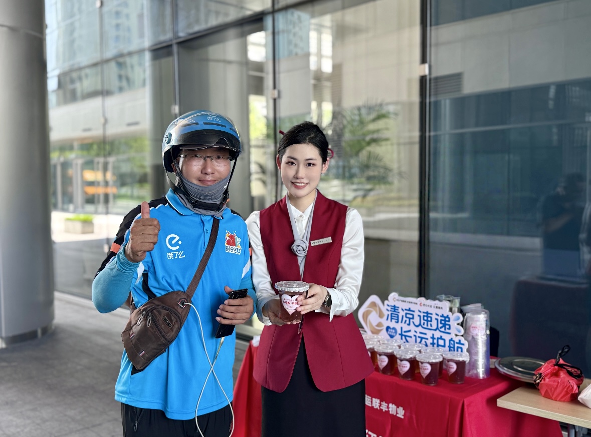 长运物业各项目精心打造“清凉驿站”,持续免费供应冰饮、酸梅汤、西瓜等降温物资。这份关怀从商务楼宇、住宅小区延伸至街头,惠及环卫工、快递员等更多“城市守护者”。