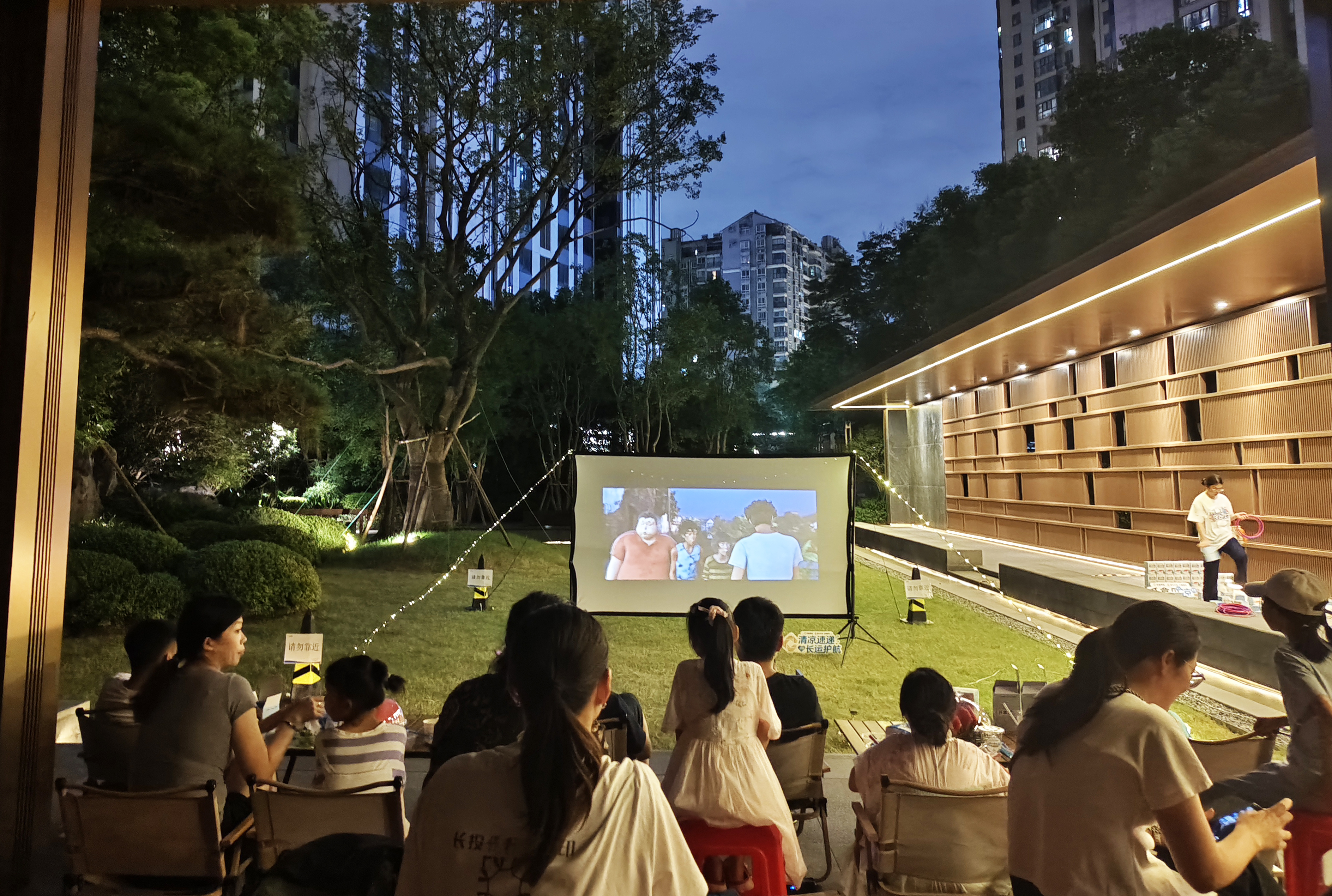 同步开展的“夏日星空电影节”活动,成为了点亮社区夜晚、凝聚精神力量的独特风景。在多个住宅小区开阔的广场或绿茵草坪上,长运物业志愿者们架起露天银幕,布置好舒适的观影区。当夜幕低垂,繁星点点,业主们陆续汇聚,共赴光影之约。《长津湖》《我和我的祖国》等一部部激荡人心的经典影片轮番上映。光影流转间,革命先辈的英勇壮举震撼心灵,深沉的家国情怀在夏夜的微风中无声浸润。