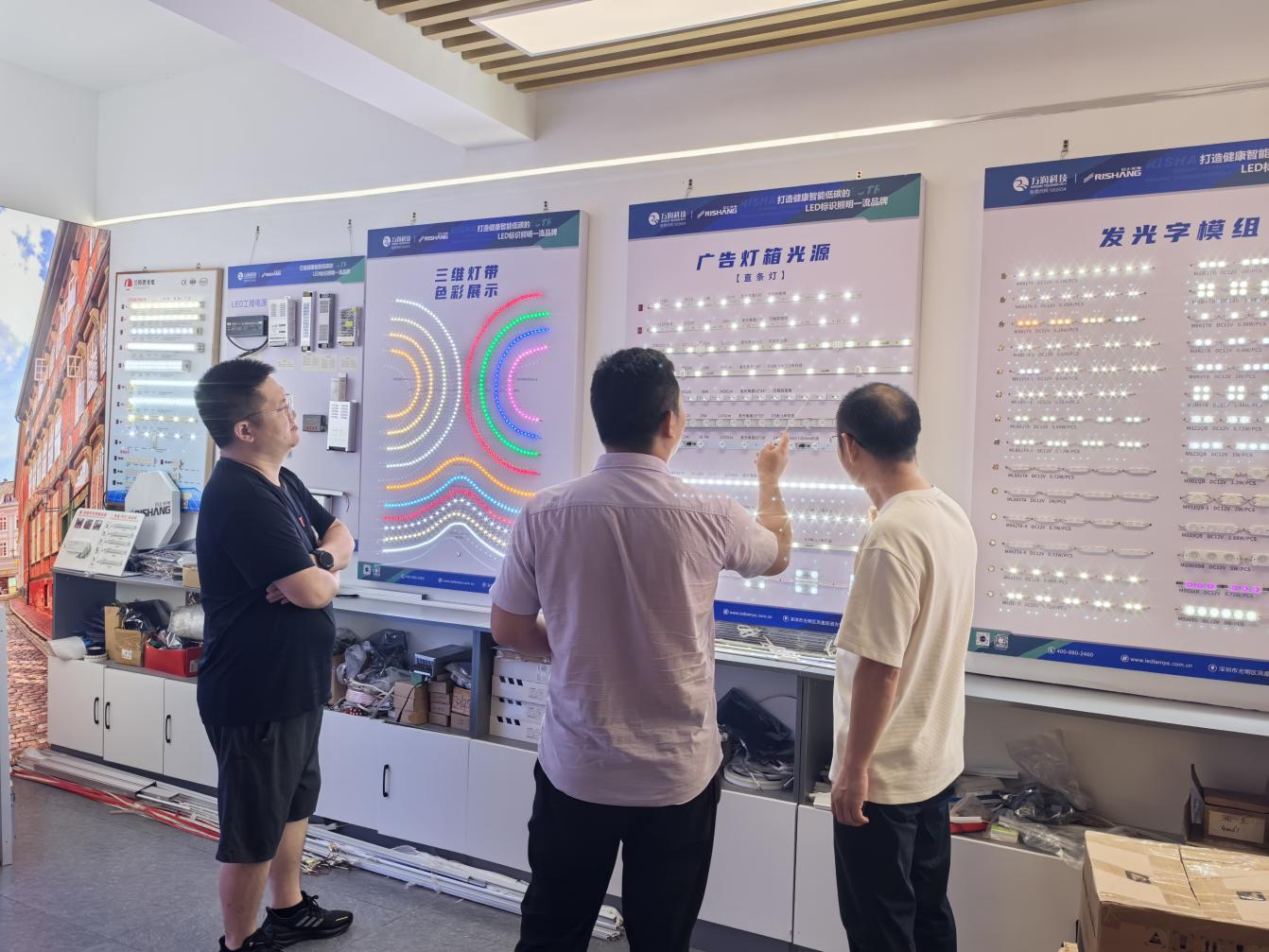 调研期间,团队深入多家标识制作企业的生产一线,与企业负责人、技术及生产人员细致沟通,了解产品在安装便捷性、稳定性、显示效果与长期可靠性等方面的实际反馈。制作商对日上光电的产品质量表示认可,同时从实际应用角度对产品设计、材料工艺安装规范提出了宝贵建议。