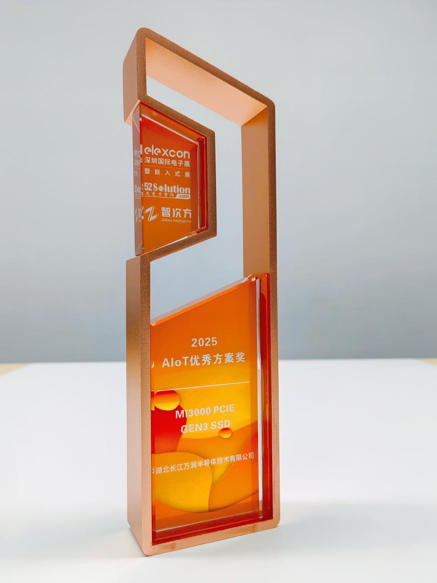 近日,在ELEXCON深圳国际电子展联合我爱方案网、智次方物联网智库共同举办的“AIoT创新解决方案大赏”评选中,万润科技旗下湖北长江万润半导体技术有限公司的MI3000高可靠固态硬盘,凭借突出的行业应用价值获“2025AIoT优秀方案奖”。