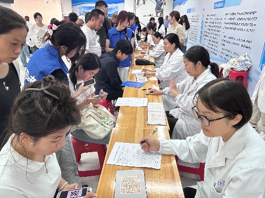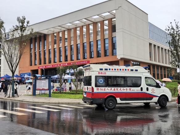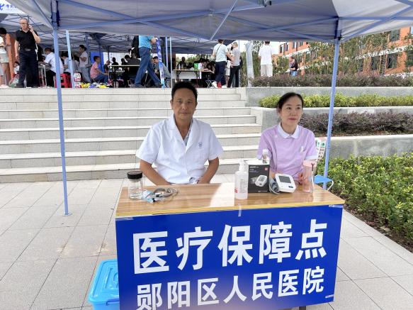 报到大厅门口还设置医疗保障点,郧阳区人民医院的医护人员携带药品与专业设备随时待命,为新生及家长提供健康保障。