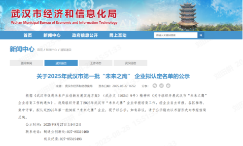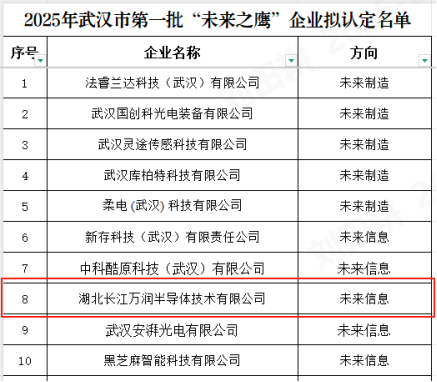 近日,武汉市经济和信息化局对2025年第一批“未来之鹰”企业拟认定名单完成公示,万润科技旗下湖北长江万润半导体技术有限公司经过规范的企业申报、推荐和集中评审流程,成功入选。