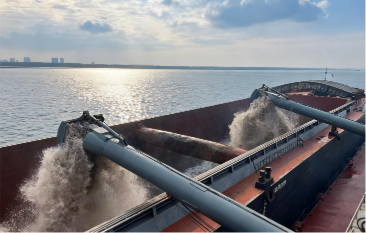11月4日,长江嘉鱼段江面上,疏浚砂石从管道中喷涌而出,标志着长江新材2025年度嘉鱼主航道跨市利用项目正式启动。这是长江新材旗下武汉、嘉鱼、洪湖三地公司深化协作,推动长江疏浚砂资源跨市共享、共建绿色航运走廊的又一重要进展。