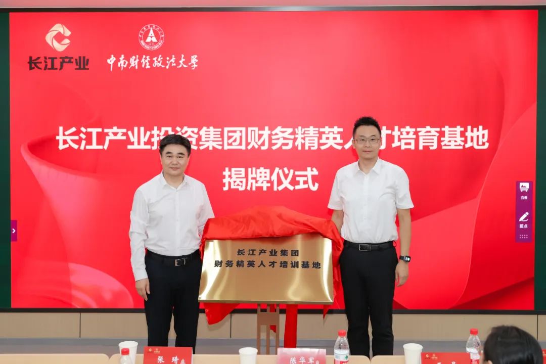 6月23日,长江产业集团与中南财经政法大学共建的财务精英高级研修班在中南财经政法大学举行开班仪式。作为校企合作的重要成果,双方共同揭牌“长江产业集团财务精英人才培育基地”。
