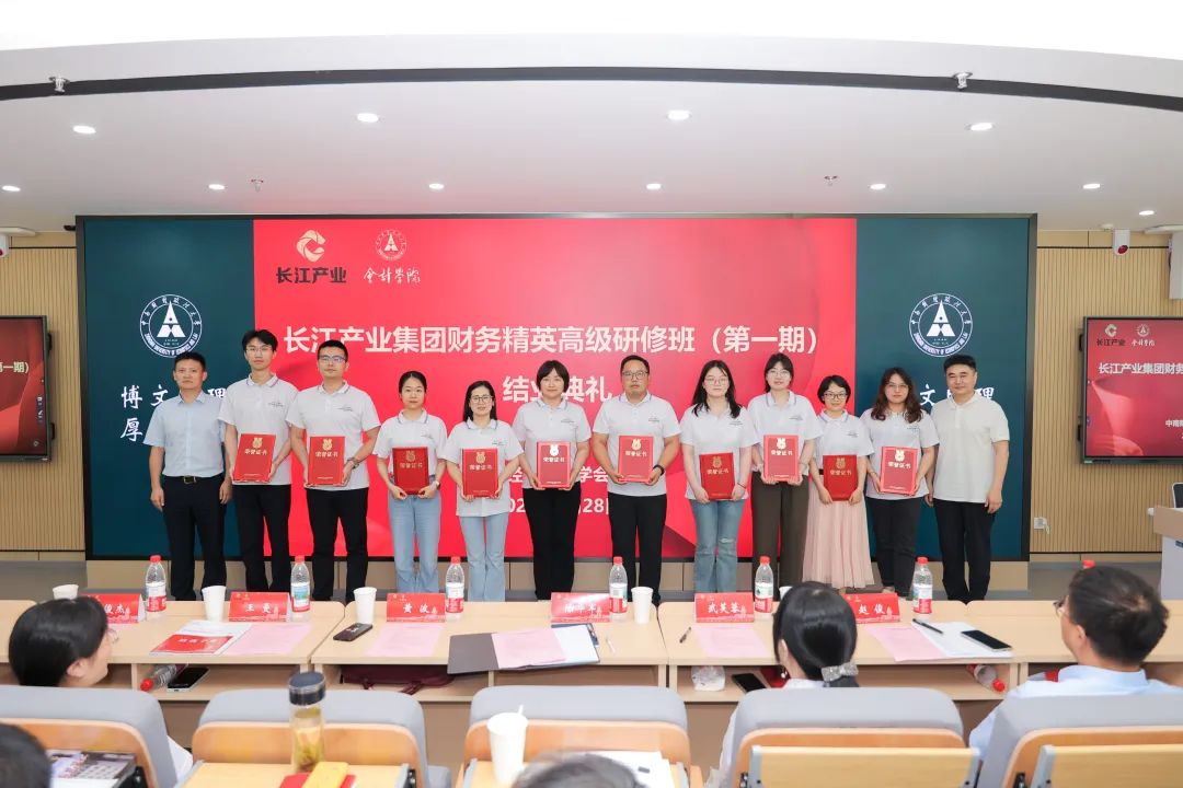 6月28日,长江产业集团财务精英高级研修班(第一期)结营仪式在中南财经政法大学隆重举行。中南财经政法大学会计学院党委副书记、纪委书记兼行政副院长黄波,集团财务总监陈华军出席活动。