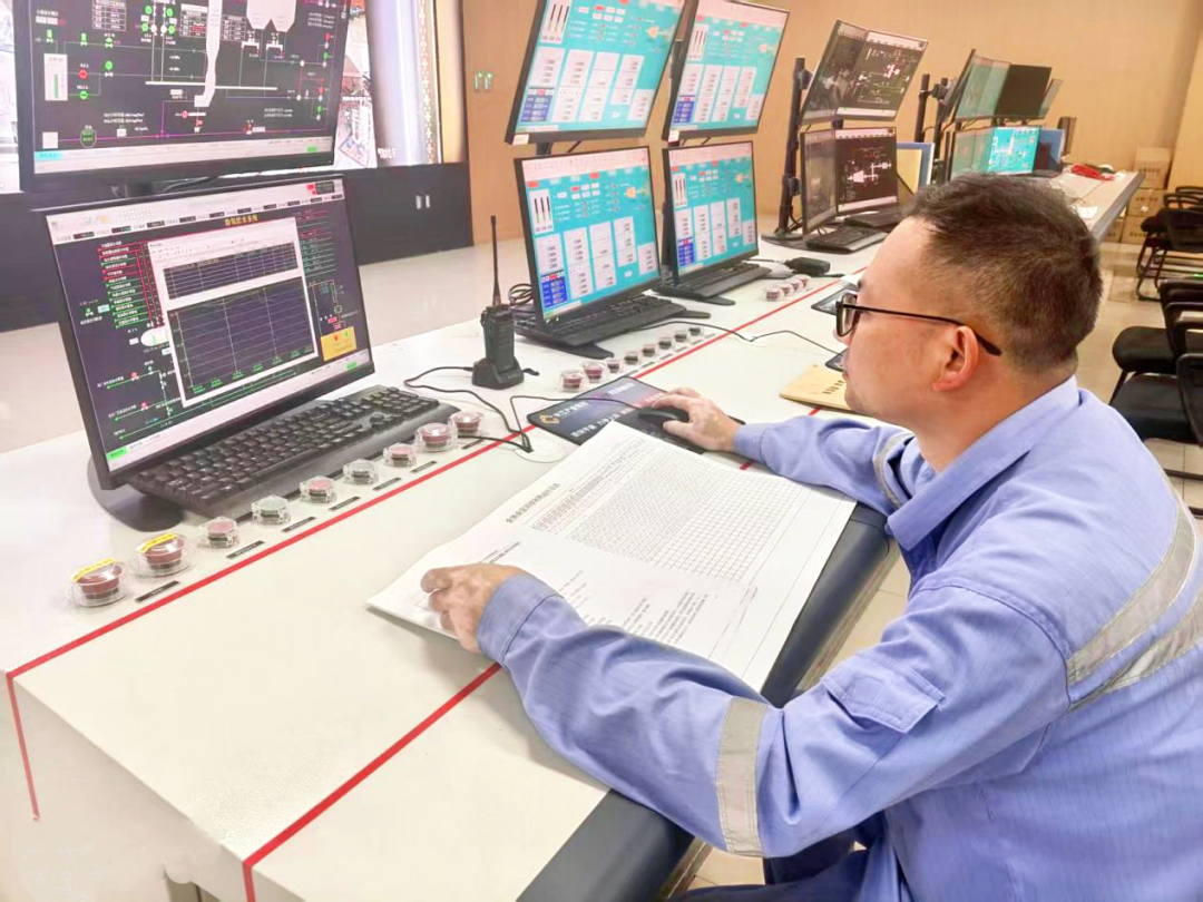 走进热电集控室,屏幕上不断跳动的参数,是生产运行最核心的“战场”。热电事业部值班长杨桥目光如炬,紧盯每一项参数与曲线的细微变化,指尖在操作台上精准调控。“节日期间负荷波动频繁,必须分秒紧盯,哪怕只有0.1的偏差,也要立刻响应。安全生产,一刻也不能放松。”他一边介绍,一边娴熟地记录数据。身旁的值班日志上,密密麻麻写满了每小时的运行状态与设备参数——字里行间,皆是责任的印记。