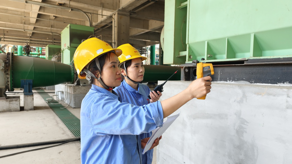 生产装置区的巡检路,是双环人节日期间里的“日常轨迹”。锅炉工序生产小组长莫路路与同事们身着工装,手持工具,步履坚定地穿行于设备之间。弯腰查验管道密封,挥锤敲击落煤管,持测温仪确认电机温度……从阀门是否渗漏,到防护设施是否到位,他们不放过任何一个细节。“越是过节,越要严把安全关。我们多走一步,多查一处,隐患就少一分,生产就多一分保障。”朴实的话语中透着力量,手套上的油污,正是他们坚守的勋章。