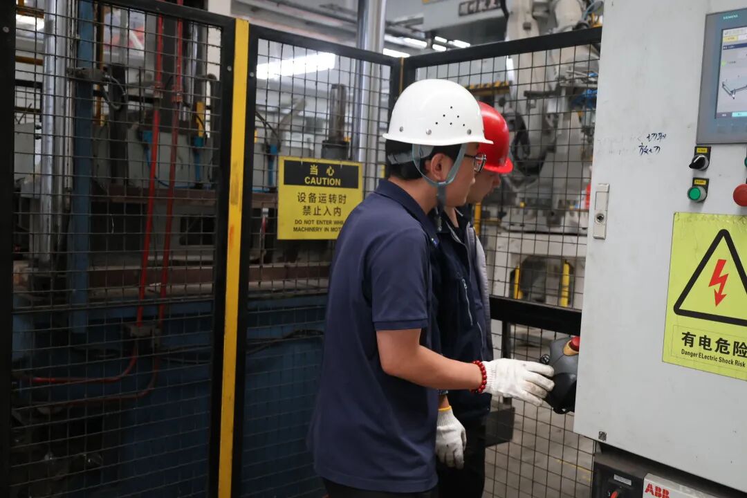 走进轻合金车间,熔炉散发的暖光与机器的规律轰鸣,交织成一首独特的节日协奏曲。工人们全神贯注,在各自岗位上精准把控着每一道工艺流程。大家心往一处想,劲往一处使,以“时不我待、只争朝夕”的紧迫感和拼搏劲头,争分夺秒抢抓生产进度,全力以赴确保产品高质量交付。