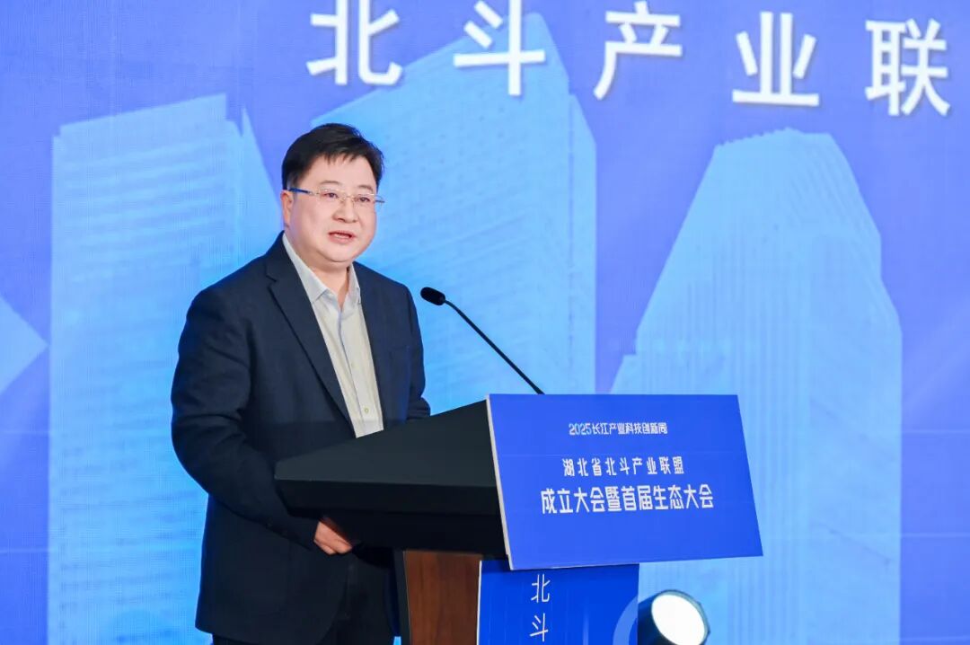 黎苑楚代表联盟理事长单位致辞。他表示,北斗产业关乎“国之大者”,是科技自立自强的重要支撑,也是塑造未来竞争新优势的战略基石。省委、省政府高度重视北斗产业发展,将其列为湖北突破性发展的优势产业,经过多年发展,湖北北斗产业区域发展指数稳居中部第一。作为省级以发展产业为使命的国有企业,长江产业集团始终将发展北斗产业作为落实国家战略、服务湖北支点建设的重要抓手,通过培育实体企业矩阵、设立超百亿元北斗产业基金群、攻克核心技术难关、组建北斗供应链公司、搭建湖北CORS服务“一张网”平台、构建产业生态等一系列举措,为北斗产业发展奠定了坚实基础。作为湖北省北斗产业联盟发起单位和理事长单位,集团将坚决扛起“链主”担当,从构建协同机制促进生态融合、聚焦关键技术突破产业瓶颈、强化资本赋能助力产业提质升级、开放核心资源强化服务支撑、深化开放合作拓宽发展空间五个方面发力,与全体会员单位携手,共同打造具有全球竞争力的北斗产业集群。