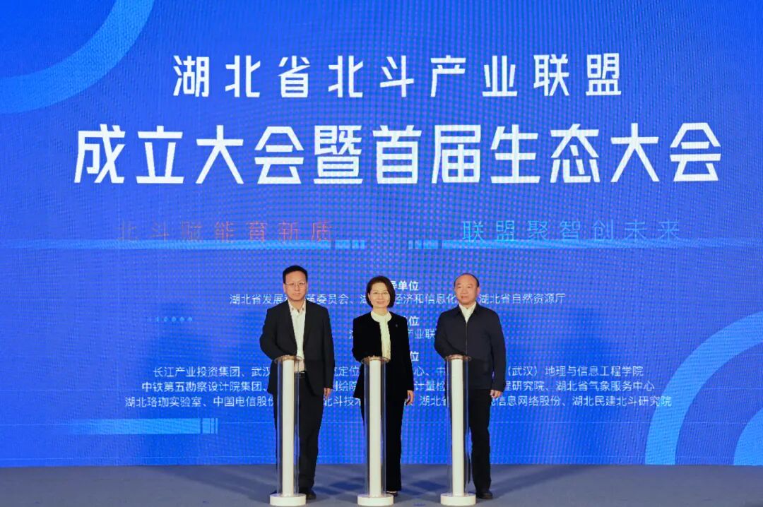 为深入贯彻习近平总书记关于北斗产业发展的重要指示精神,积极响应湖北省委、省政府“高质量发展北斗产业”工作部署,加速打造世界级北斗产业集群,12月11日,湖北省北斗产业联盟成立大会暨首届生态大会在长江产业大厦隆重召开。省委常委、省委统战部部长宁咏,省委宣传部副部长、省广播电视局党组书记、局长张世华,武汉大学科学技术发展研究院院长、湖北珞珈实验室首席科学家姜卫平,省委统战部副部长、省工商联党组书记、常务副主席庄光明,中国卫星导航定位协会常务副会长赵继成,长江产业集团党委书记、董事长黎苑楚,党委副书记、总经理吕晓华,省发改委副主任秦健,铁五院副院长、总工程师谌启发,民建湖北省委副主委刘运梅,省气象局党组成员、副局长丁锋,省地质局党委委员、副局长刘永生,省经信厅二级巡视员王成祥,省科技厅二级巡视员吴勇杰,省自然资源厅二级巡视员王华,长江产业集团党委委员、副总经理聂松涛出席会议,共商湖北北斗产业高质量发展大计,共绘产业协同发展新蓝图。
